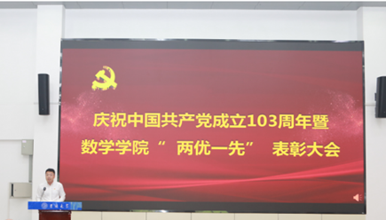 为庆祝中国共产党成立103周年,继承和发扬党的优良传统,激励广大党员牢记党的宗旨、坚定理想信念、强化党员意识、激发学习工作热情,更好地发挥共产党员的先锋模范作用,6月20日,公司党委在数学楼二楼报告厅召开庆祝中国共产党成立103周年暨“两优一先”表彰大会。党委副书记陈续升主持会议并宣读表彰决定。