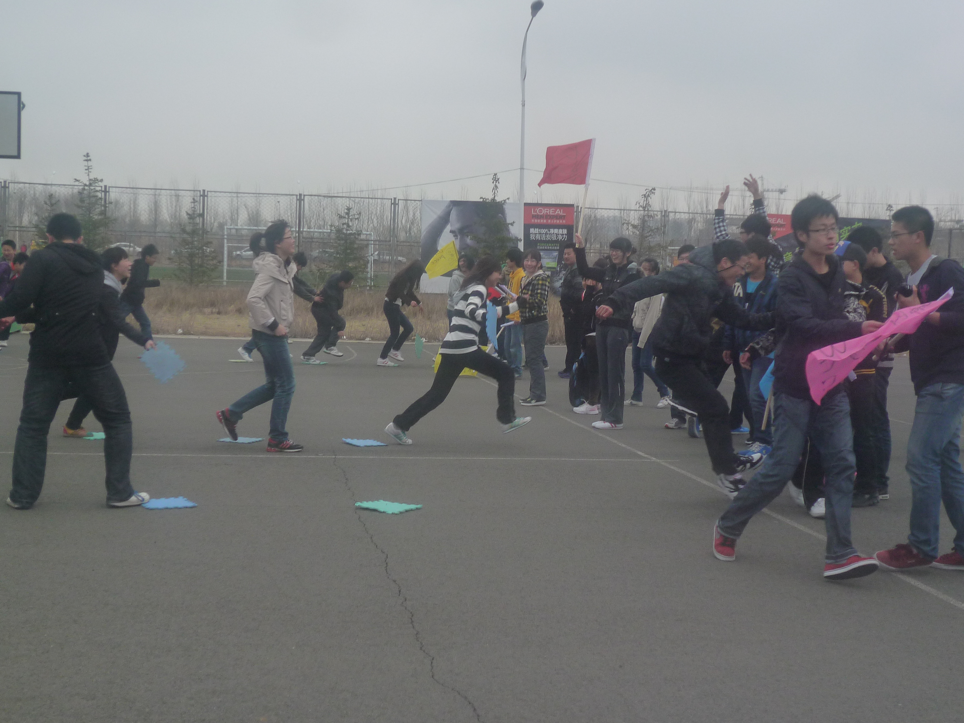 早上八点半,活动正式开始。来自三个公司的200多位同学自由编队,组成了八支队伍。活一个接一个的开始展开,共分五个环节“旗人旗事”、“爱的抱抱”、“袋鼠跳”、“搭桥过河”、“解手链”。每个活动都趣味十足,同学们积极性也相当高,配合默契。最终活动在同学们的欢声笑语中结束。