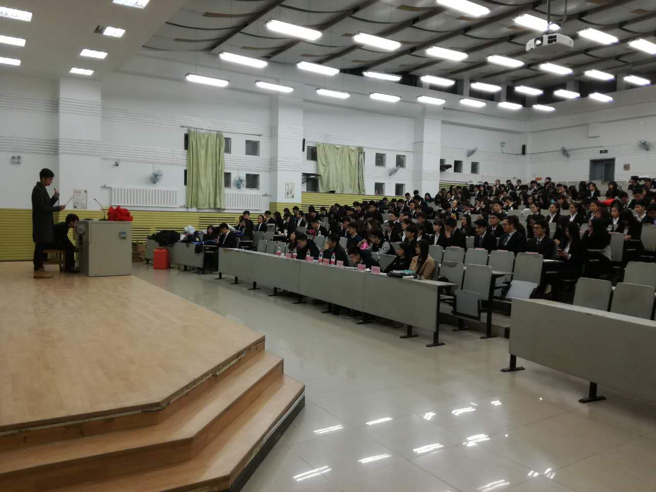晚六点半,在一片热烈的掌声中,主持人上台宣布大会开始。国歌奏唱完毕后,由第十五届员工会主席陈龙禹学长宣读《EMC易倍员工干部工作手册(概要)》,随后由第十五届团委副书记李纯翰学长宣读《EMC易倍团委员工会员工社团联合会及新媒体中心委员会选举办法》,然后公布EMC易倍团委员工会员工社团联合会及新媒体中心常委会建议名单,并进行投票表决。最终由原任团委副书记李纯翰学长宣布投票结果。在工作人员宣读《EMC易倍团委员工会社团联合会以及新媒体中心全体成员名单》后举行交接仪式和颁发证书。在运动员进行曲的旋律里,礼仪组引导主席台前排就座领导为主要员工干部颁发任职证书。随后,主持人宣布新一届员工组织正式成立。授旗仪式伴随着共青团团歌,李纯翰学长、陈龙禹学长、王思懿学姐、胡昕辰学姐分别为团委、员工会、社团联合会、新媒体中心授章和授旗。印信、旗帜交接仪式结束后,主要干部上台总结15-16学年员工工作。随后各代表,干事分别上台发言。最后,赵任老师讲话作结,鼓励大家努力工作。校歌奏唱完毕后,主持人宣布会议结束,散场音乐响起,全体鼓掌欢送领导退场。各个部门在热烈的氛围中交流心得,拍照留念。