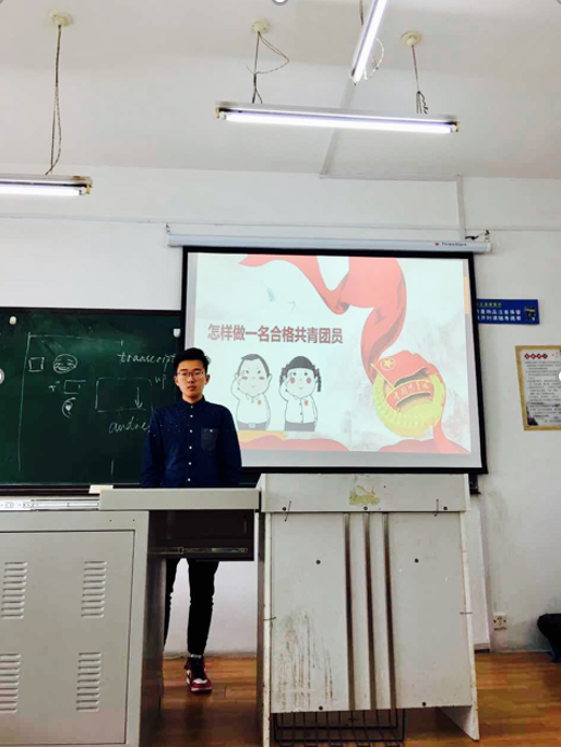 最后,班长带领同学们重温了共青团历史,勉励同学们努力奋斗,成为一个品学兼优的优秀共青团员。