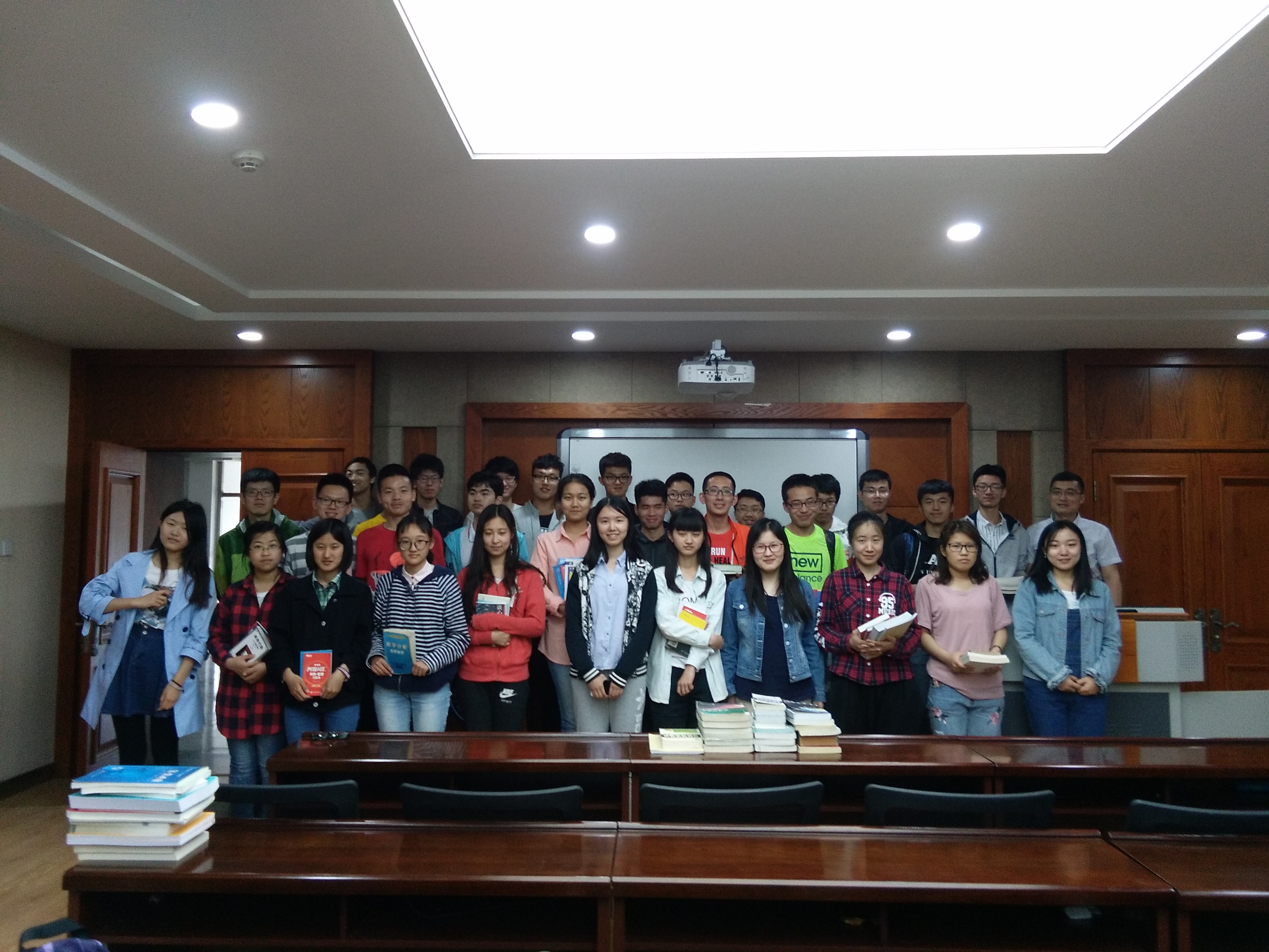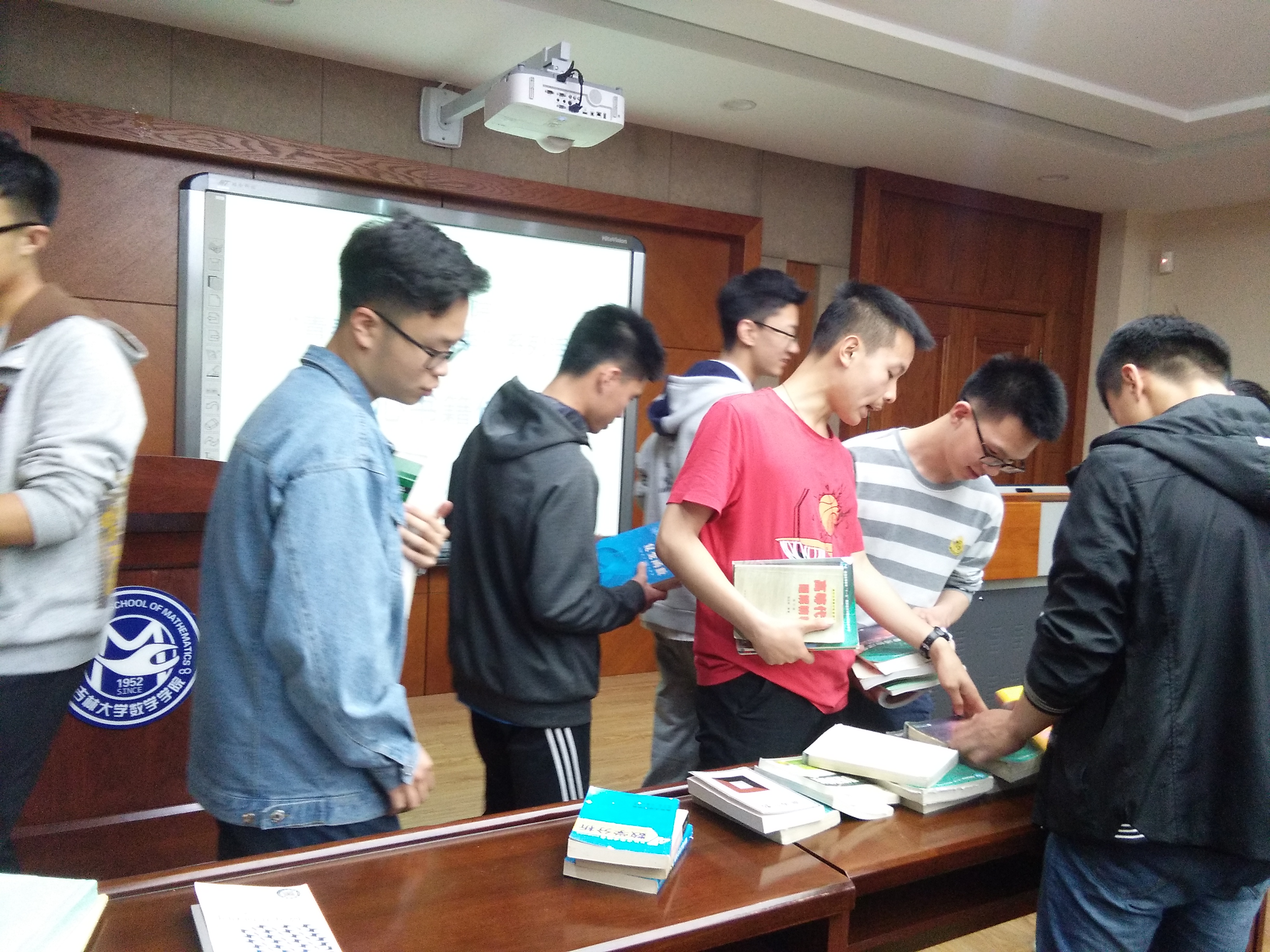 同学们来到现场,看到了摆在前面满满一桌子的各种参考书和教科书后,顿时有了浓烈的兴趣。老师通知开始后,大家立刻迫不及待的冲到前面开始挑选自己感兴趣和需要的书籍。有的同学搬走了四级材料,有的同学手疾眼快拿了物理教材,大四的学长学姐们也在旁边不时提供一些选择书籍的学习建议,现场一片欢声笑语,气氛热烈。很快,大家都选好了自己心仪的书本,并向学长学姐们表达了诚挚的感谢,然后满载而归。