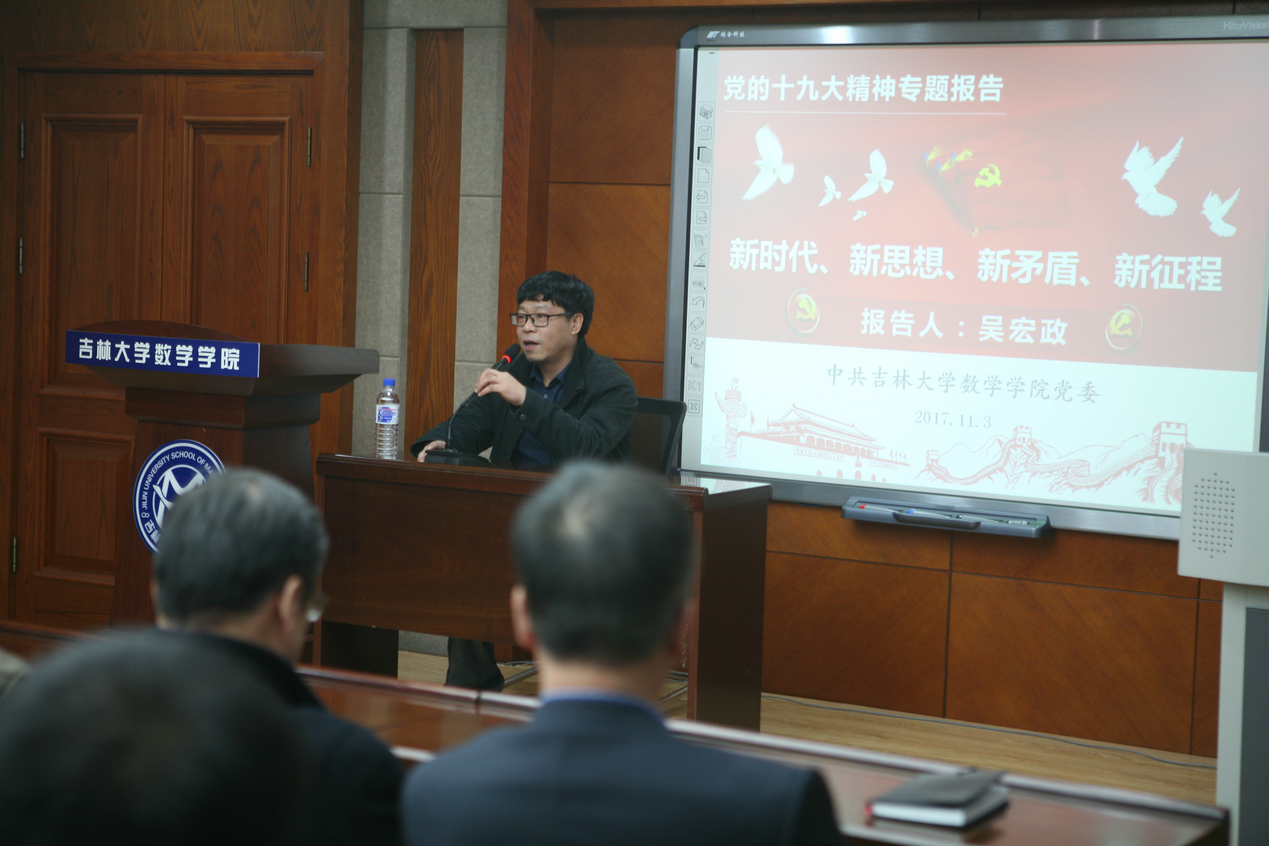 在报告中,吴宏政教授紧紧围绕党的十九大报告作了领学、阐释和精读。他重点解读了党的十九大提出的新时代、新思想、新矛盾和新征程等报告亮点,从这几个亮点为切入点,深刻阐释了党的十九大的重大现实和历史意义,使与会党员进一步深刻领会了党的十九大精神内涵,进一步准确把握了习近平新时代中国特色社会主义思想。
